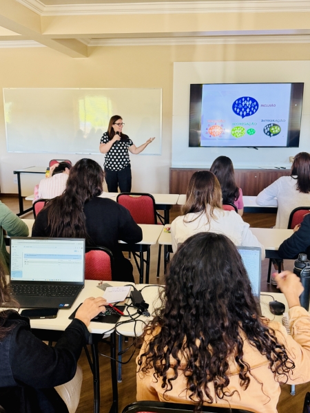 A formação contou com a assessoria da Profª Drª Nivânia Maria de Melo Reis e da Profª Drª Stela Maria Fernandes Marques, especialistas na área da Educação Inclusiva, que conduziram reflexões e aprofundamentos sobre fundamentos conceituais, marcos legais, neurociência da aprendizagem e estratégias pedagógicas voltadas à inclusão.